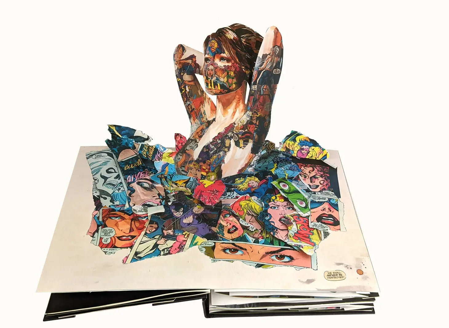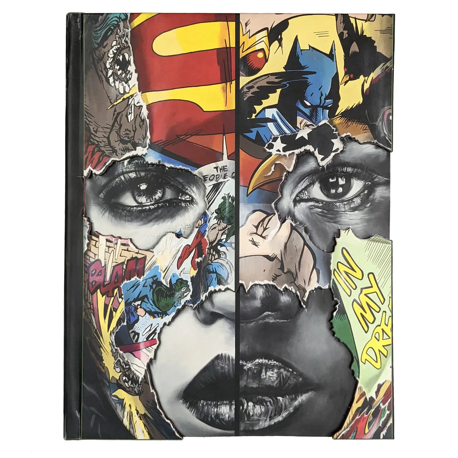 The cages pop up book takes artist Sandra Chevrier’s work into a new dimension with highly detailed laser cut pop up spreads. Cages includes pop up versions of: La cage et le coeur de la bête’ (the heart of the beast) ‘la cage aux mille et un visages’ (a woman of a thousand faces) ‘la cage et les lambeaux rouges comme le feu’ (red shreds like fire) ‘la cage et le grondement du tonnerre’ (the roar of thunder) ‘la cage et la mort de superman / dans l’attente de notre sauveur’ (the death of superman, awaiting a saviour’ from the post apocalyptic series) ‘nous sommes uns’ (we are one) Book is 9″ w x 11.5″ h x 1″ d Each page opens to 11″ x 17″