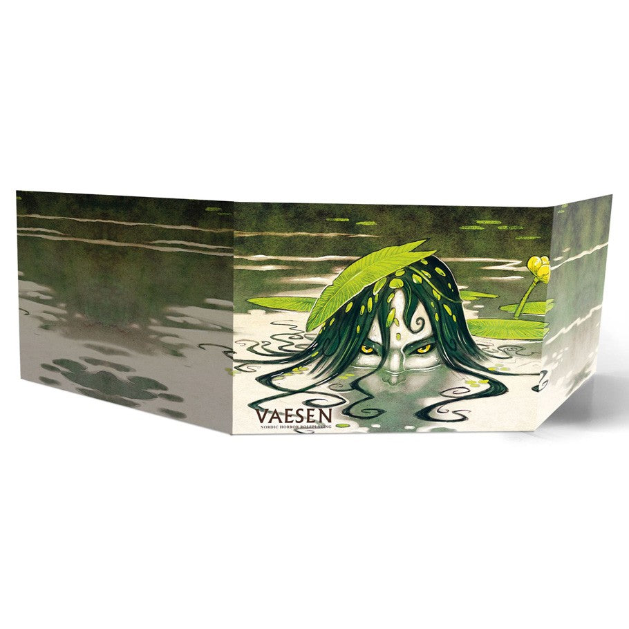 A deluxe Gamemaster’s screen in landscape format for Vaesen – Nordic Horror Roleplaying. It features Johan Egerkrans’s art on the outside and a host of useful tables and important information on the inside, while keeping the GM’s plans hidden from the eyes of inquisitive players. Included in the package is also is a large double-sided poster featuring a beautiful map of the Mythic North setting on one side and the town of Upsala on the other (size 432x558mm).